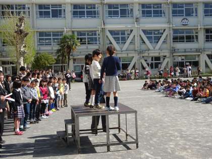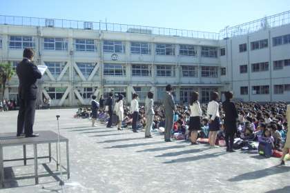 素晴らしい天気の下、子どもたちの笑顔がはじけていました。平成25年度始業式。新しく山野小に来た先生、主事さん方を紹介し、いよいよ担任発表。期待に胸を膨らませる瞬間です。このわくわく感をずっと保っていきたいものです。転入生は何と26人!でも、山野では毎年のことなので子どもたちは平気です。始業式の後は、校庭でクラスごとに簡単に顔合わせをしました。新しい教室での顔合わせは明日です!さあ、がんばろう!