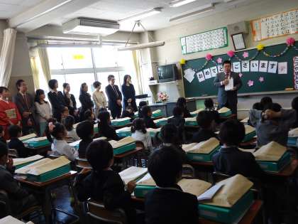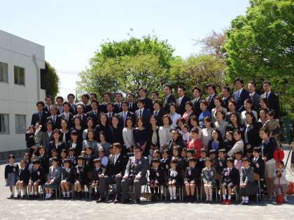 体育館の入学式の後は、クラスごとに記念写真を撮ったり、担任の先生のお話を聞いたりしました。さあ、明日からは本格的に小学校生活の始まりです。みんな、待ってますよ!