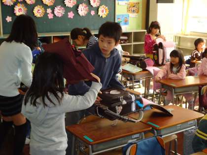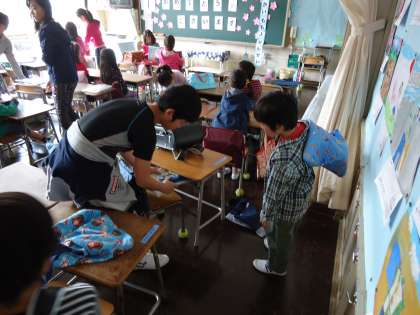 でも安心です。頼もしい6年生が笑顔で迎えてくれます。なれない朝の準備も、手とり足とり教えてくれます。