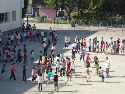 今日の体育朝会は、2グランドでは2年生が1年生に、気をつけや前へならえのお手本を見せてくれました。1グランドでは、久々の長縄です。山野小学校では、年間を通して長縄に取り組みます。自分たちで目標を決め、自分たちで頑張る意識をもっていきます。