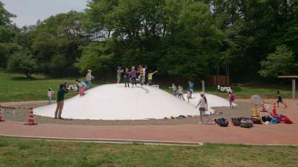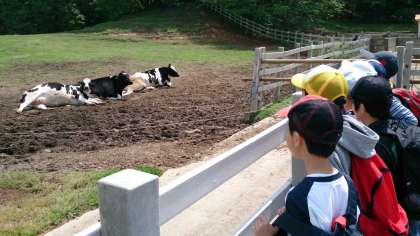 牛さんにも会いました。トランポリンにものりました。たくさんたくさん遊んでます。