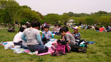 お待ちかねのお弁当タイム。朝早くから作ってくれたお家の人に感謝して、いただきます。