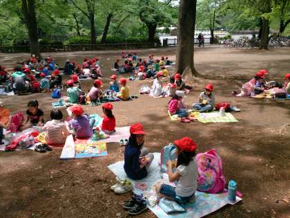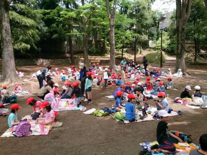 お弁当タイム。お家の人が作ってくれた美味しい美味しいお弁当。いただきます。