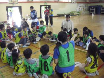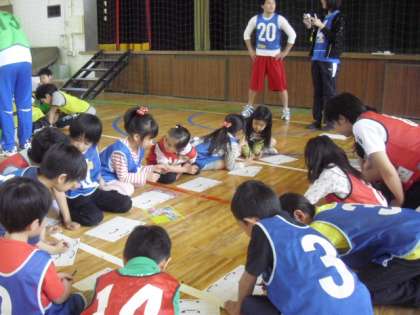 国士舘大学の「児童文化研究会」の開催イベントで、今日は、40人以上の子どもたちが参加しました。他己紹介や二人三脚、コンビで協力、ボスは誰だ!をして楽しく遊びました。この大学生のサークルは、本校の前薗先生が、平成22年度に大学生の頃に発起人となって始まったそうです。今回で27回目となりました。