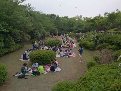 源氏山でお弁当タイム。感謝していただきます。次は銭洗い弁天です。