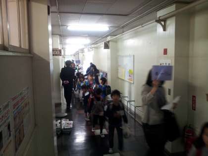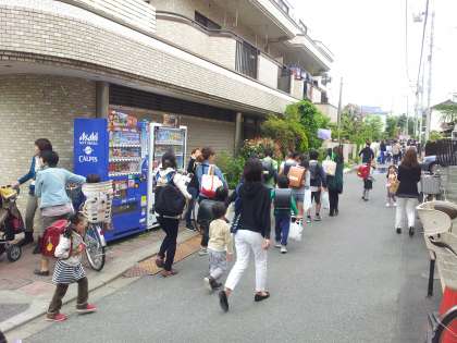 校外班の「つどい」では、まず、新1年生が、近所の上級生の顔を覚え、登下校時に感じる不安を少しでも解消するねらいがあります。そして、教師もいっしょに下校することによって、通学路の安全確認をいっしょに確認します。その他にも、校外班の「つどい」には、上級生にとっても、近くに住む友達や保護者の方々と、顔見知りになって交流を深めるきっかけにもなります。