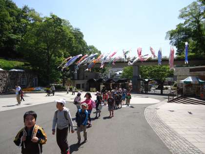 GW明けの今日、3年生は多摩動物公園に遠足でした。連休明けということでみんな元気に来るか心配でしたが、2名欠席以外は、元気に参加することができました。電車、モノレールの乗り方もとっても上手でした。多摩動物公園には一番乗り。まず最初に、ライオンバス乗り場に行きました。