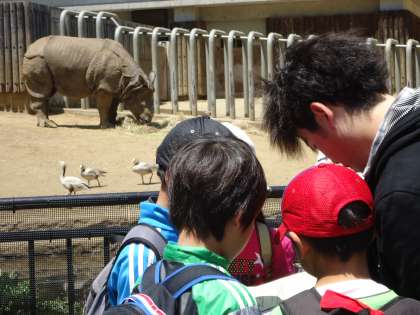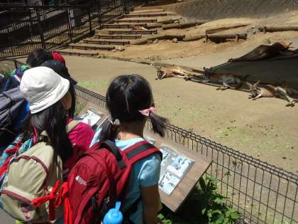 カンガルー、さい・・・。たくさん見て回って、お昼ごはんの場所に集合。思ったよりも早く来て、チェックポイントの菅原先生大忙し!