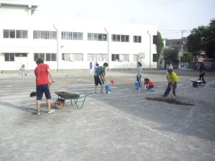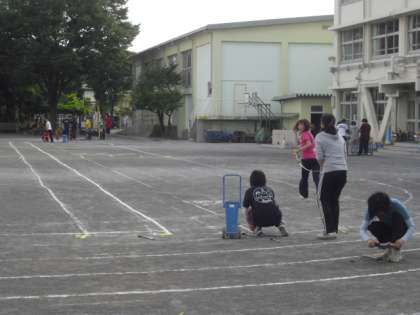 全教職員でスポーツフェスタに向けて校庭整備を行いました。校庭の凹凸を少しでも減らしたり、正確にコースをラインカーで引いたりしました。練習のための準備も整いました。
