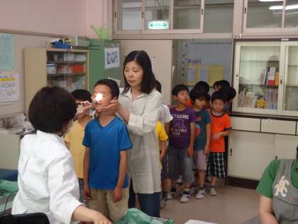 検診もだいぶ進み、今日は耳鼻科検診です。アレルギーの児童が増え気味ですが、どうだったでしょう。プールの前に、きちんと治しておきましょう!