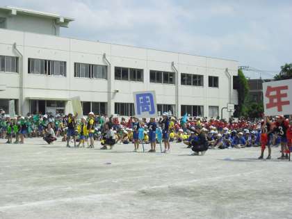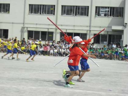 棒に花を付けていきます。そうして、皆で最後は「祝 50 周 年」の文字をつくり上げました。