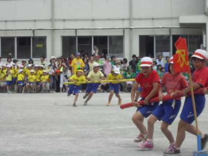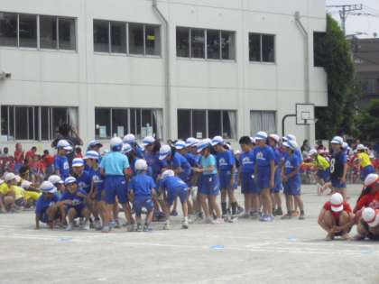 こちらも50周年を祝う工夫が取り入れられています。ビブスに似た旗に祝50周年と書いてあり、まず皆で声を合わせた後、競技が始まりました。