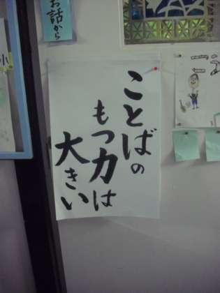 今日は、「ことばのもつ力は大きい」ことについてお話をしました。一つのことばで人は喜んだり、とても傷ついたりします。過去に、自分がとても傷ついたことがあることも例に挙げて話しました。「ふわふわことば」を増やして、「とげとげことば」を減らしていってほしいと思います。