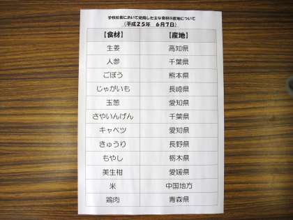 みなさんは、“梅雨”という言葉を知っていますか。梅雨とは、ちょうど今、6月〜7月初め頃の雨の多い時期のことで、『梅(うめ)』に『雨(あめ)』と書きます。これは、梅の実が熟す(おいしくなる)頃に降る雨という意味でこの字があてられたようです。つまり、梅雨の時期である今が梅の旬なのです。今日は、そんな梅をわかめと一緒にごはんに混ぜました。梅のすっぱさは、体の疲れをとる働きもあるので、残さず食べて、元気に過ごしましょう。
