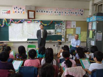 今日の5時間目に3年生は「総合的な学習の時間」の学習の一環として、地域の方をゲストティーチャーとしてお招きしました。