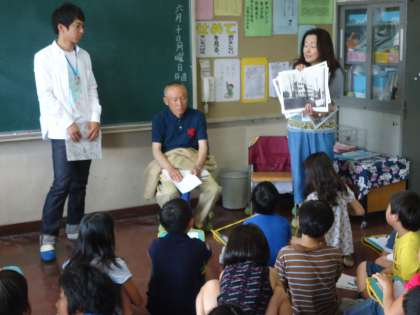 砧の昔の話や、山野小学校の昔などの話を子どもたちは、目をかがやかせて聞いていました。