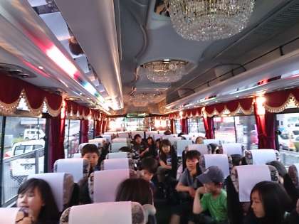 熱烈な見送りで出発。バスレクで盛り上がりながら、現在谷原の交差点です。まもなく関越道です。