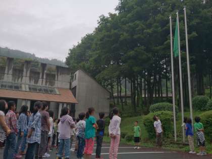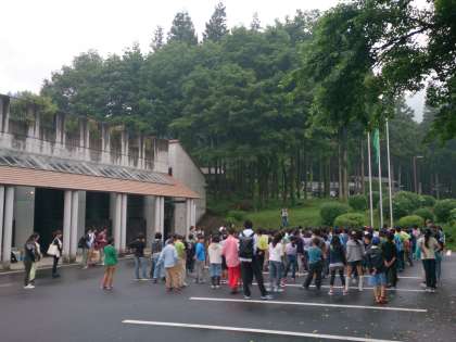 中野ビレッジ到着。開室式が始まりました。なんと雨はやんでます〓