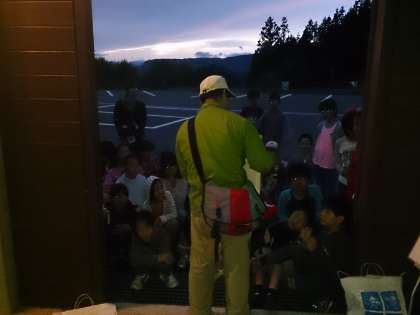 クラスごとに川場の方がついて、ナイトハイクが始まりました。川場の動物についてレクチャーをうけました。