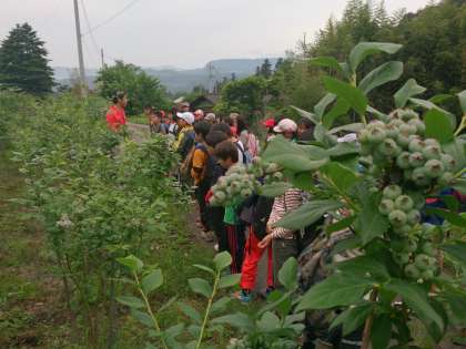ブルーベリー畑を見たり、蔵を見たり、わき水にさわったりしました。