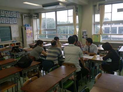 今日は授業後、砧の学び舎の4校の教員が明正小学校と砧小学校に集まり、研修会を開いています。授業研究の後、各部会ごとに集まり、一年間の確認をします。限られた時間の中で、学び舎のつながりを強くしたり、実践を確認しあったりしています。