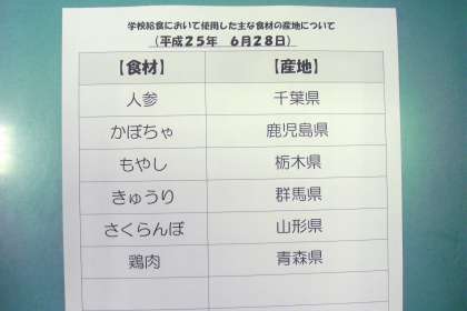 今日は、五目冷やしうどんです。冷やしうどんは、つるっとした食感が食べやすく、暑い日にはぴったりですが、その反面、よく噛まずに飲み込んでしまいがちな食べ物でもあります。今日は、そんなうどんもよく噛んもらうために、かみごたえのある竹輪と、厚切りのかぼちゃの天ぷらを付け合わせにしました。口の中に たくさんものを入れすぎても噛むことができないので、口の中にはものを入れすぎず、少しずつ、よく噛んで食べましょう。