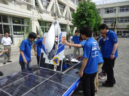 実際にソーラーカーを走らせながら、仕組みをなどを教えていただきました。