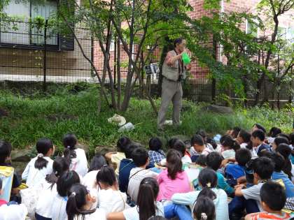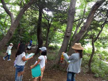 1、2時間目に暑い中、すみれば自然庭園に行ってきました。