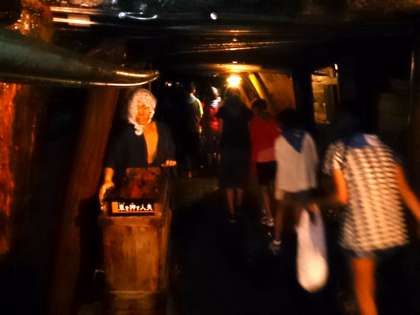 足尾銅山に来ました。残念ながら雨です。トロッコに乗って坑道内へ。中は寒いくらいです。