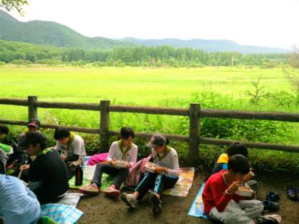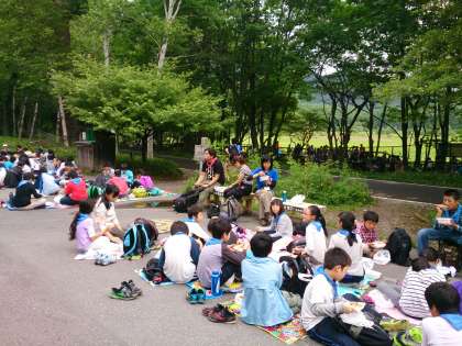 お弁当タイム。お腹ペコペコ。大自然のなかでいつも以上に美味しいです。