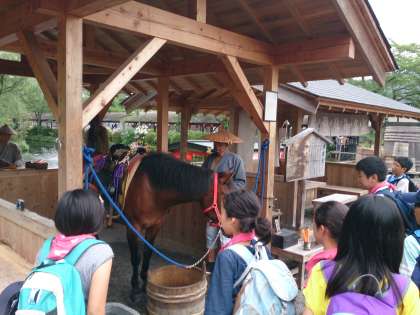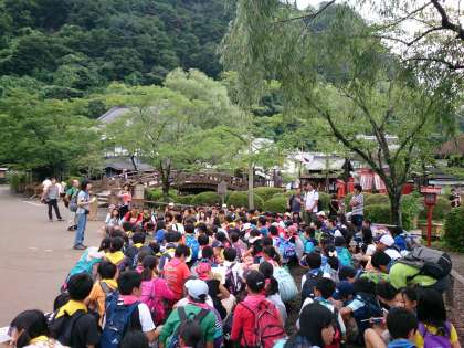 江戸村に到着。今から班ごとの行動です。楽しみ!
