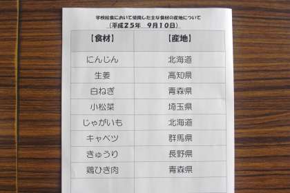 みなさん、今月のマナー目標を知っていますか。今月は、「食事にふさわしい環境づくりをしよう」です。自分の周り、教室を見てください。食事にふさわしい環境ですか。授業で使ったものが床に落ちていたり、机の上に出ていたりしませんか。大声で話したり、うるさくせず、静かに当番の合図を待っていますか。自分だけではなく、クラスみんなが気持ちよく食事ができる環境を作りましょう。