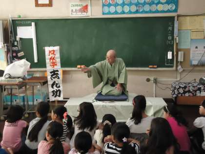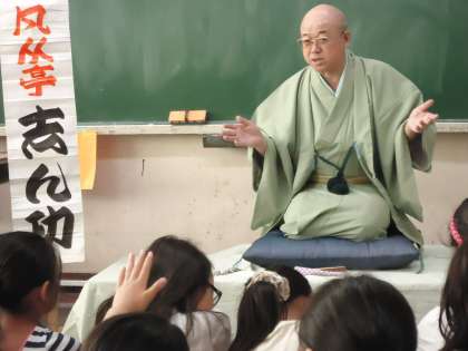 授業の最後には、何人かの子どもが実際に高座上がって、小話を披露し笑いで溢れました。