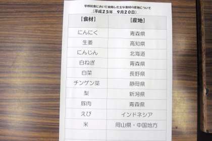 みなさん、中華丼を見てください。緑の野菜が入っていますね。この野菜の名前を知っていますか。これは、チンゲンサイです。チンゲンサイは、中国から日本に伝わった野菜で、今では、静岡県や茨城県などでたくさん作られています。ビタミンやミネラルがたっぷりで、ガンという恐ろしい病気を防ぐ働きもあると言われているほどです。残さず食べて元気にすごしましょう。