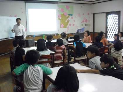 先週の金曜日にキッコーマンの方にお越しいただいて、しょうゆ塾の授業を行いました。しょうゆができるまでの話やしょうゆに味、使い方などについて分かりやすく教えていただきました。最後には1人1本ミニボトルのしょうゆをおみあげに頂きました。子供たちはとても楽しく「食」について考えることができました。