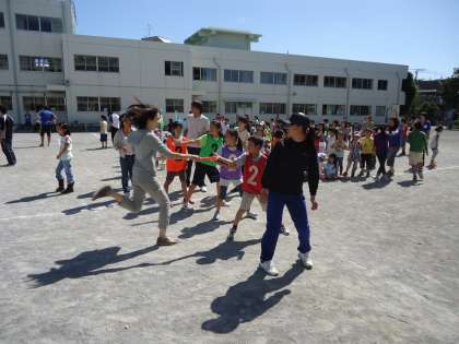 競技は、障害物競争、全員リレー、宝つり、と続々と続きます。みんな笑顔でがんばれます。地域の絆が深まる素敵な運動会。これからもずっとずっと続いていってほしいです。遊び場開放運営員会の皆さん、そしてお手伝いしてくださったPTAの皆さん、日大の学生の皆さん、本当にありがとうございました。