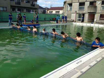 釣り堀がようやく終わりました。釣れ残った魚はこのように網で追い込んでつかまえます。この作業が毎年大変。けっこう水が冷たくて、思わず声が出てしまうほどです。ようやくほとんどを捕獲し、スタッフでおいしく頂きました。おやじネットの皆さん、毎年楽しい企画をありがとうございます!