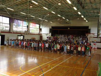 記念式典に向かって、5,6年生がんばっています。その様子をビデオに撮りました。「ふるさと」の歌声が体育館いっぱいにきれいに響きわたっていました。