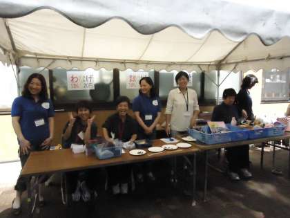 今日は砧工房さんの蔵まつりの日です。いつも学校に交換便をとりに来てくれる利用者の青年も竜田揚げをがんばって売っていました。山野小のPTAのみなさんもくじ引きコーナーなどをお手伝いしていました。山野の子どもたちもたくさん参加しています。片栗粉袋づめ体験コーナーもあり、利用者さんたちの日ごろのお仕事ぶりを知ることができました。