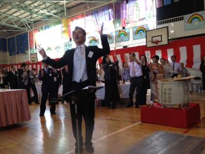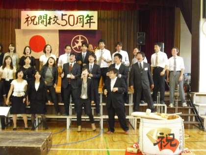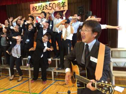 そして、学校の教職員によるゴスペル「オーハッピーデイ 山野ヴァージョン」全員合唱「翼をください」と祝賀会も最高潮を迎えます。会場が一つになりました。