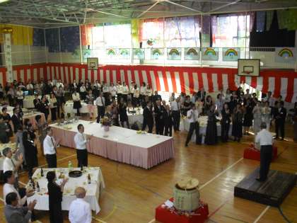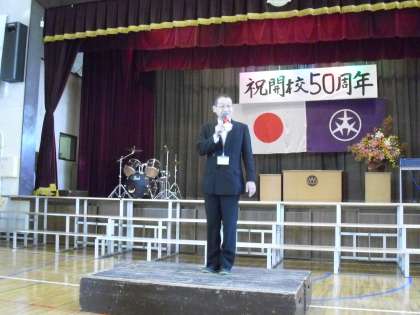盛り上がった祝賀会も、お開きの時を迎えます。宮田周年実行委員会副委員長(同窓会準備会事務局長)の閉会の言葉で名残惜しくも、お開きになりました。この祝賀会は司会の甲斐PTA周年委員会委員長をはじめPTA周年委員会の皆様、PTAボランティアの皆様が、本当にお力を注いでくださった結晶です。素晴らしい会になりました。ありがとうございます。そして、中谷周年実行委員会副委員長、西村PTA会長が全体を常に引っ張ってきてくれた賜です。まさに、砧の町ぐるみで山野小学校開校50周年記念式典・祝賀会を支えてくれました。本当にありがとうございました。素晴らしい1日になりました。