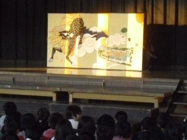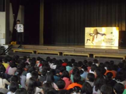 全校朝会で屏風のお披露目をしました。この屏風は、ある代の卒業生が50周年を機会に同期で作成したものです。同級生の専門家の協力で仕上げたそうです。このように友達と協力して1つのことをつくりあげていく「友の力」について校長先生からお話しがありました。やまのフェスタに向けて力を合わせていきましょう。