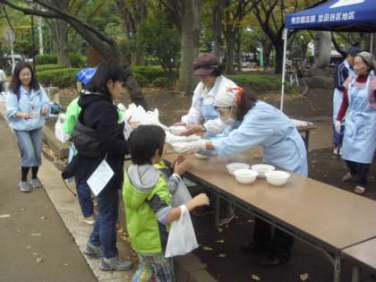 ゴールでは、おにぎりとおいしい豚汁が振る舞われました。また、山野太鼓の演奏もあり、砧ラリーをより一層盛り上げていました。