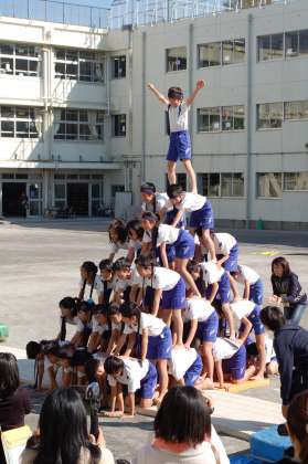 伝統のソーラン節だけではなく、体操、組体操と子どもたちのやりたいことにとことんこだわって作り上げた演技です。体操を専門とする保護者ボランティアの方の力を借り、子どもたちは安全で安心して体操に取り組めました。組体操も、日本を意識した内容でこだわっています。そして、伝統のソーラン節。腰の低さが、これまでの努力を物語っていました!