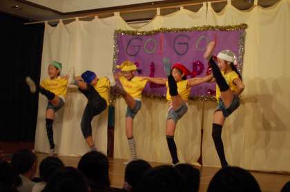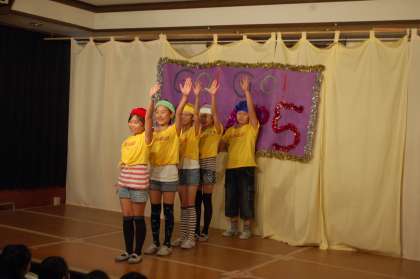 5年生のダンスユニット。女子4人、男子1人の5人で合計6曲も踊ります。チームワーク抜群!そのパフォーマンスに、会場がものすごく盛り上がっていました。女子4人の息の合ったダンスに、男子がとってもいい味付けをしていました。