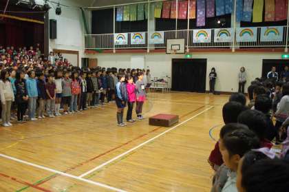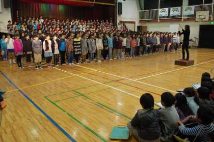 やまのフェスタでは2回エンディングがあります。今日は、子どもたちのためのエンディングです。なぜなら、明日の全てのエンディングには5,6年生しか参加しないからです。5,6年生の全員の思いを、3,4年生に伝えるのが1回目のエンディングのおおきなねらいです。こうやって、やまのフェスタの伝統は次々に引き継がれていくのです。すごいぞ、やまのフェスタ。すごいぞ、5,6年生。
