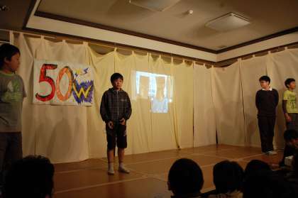 6年生のお笑。腹を抱えて笑うことができました。50Wの50は50周年の50。50周年を笑いにするなんて…すごい!Wはわっとと読み、わっと盛り上がってほしいという意味だそうです。まさにその通り。大人たちですら、すごい盛り上がりでした。レベル高いぞ!