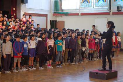昨日にも増して5,6年生の「ふるさと」歌声が美しく、そして大きく体育館に響きます。その歌声の途中で児童代表の言葉。にくい演出です。客席のお年寄りが一緒になって口ずさんでいて、涙が出そうになりました。もう一つの「ふるさと」もう言うことありません。山野の子どもたち、最高です。