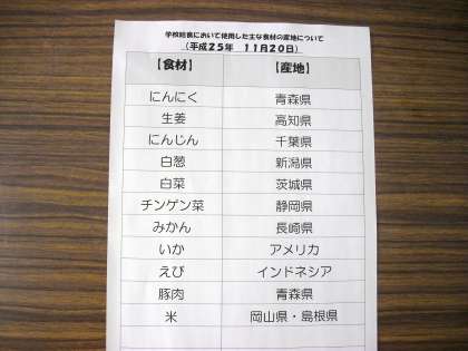 メモは、みかんについてです。今日のみかんは、『菊花みかん』といいますが、これは、種類の名前ではありません。今日のようにみかんを横に切ると、切り口が菊の花のように見えることから、横半分に切ったみかんを『菊花みかん』と呼んでいます。みかんには、風邪を予防するビタミンCがたっぷり入っています。きちんと皮をむいて、残さず食べましょう。