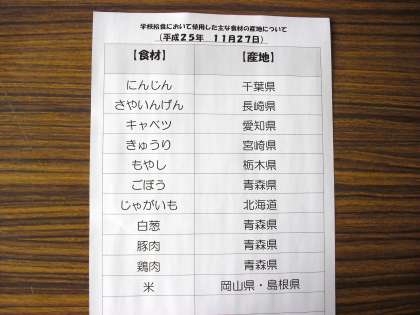 メモは、豚汁に使われているごぼうについてです。ごぼうは、青森県や茨城県でたくさん作られています。旬は、春の間と秋から冬にかけての2回あります。今は、秋から冬にかけての旬を迎え、おいしい時期です。ごぼうのおいしさは、味や食感はもちろんですが、香りにもあります。今日の豚汁は、ゴボウの香りを十分に出すため、一度炒めてから煮ています。ぜひ、味や食感とともに香りも楽しんでください。